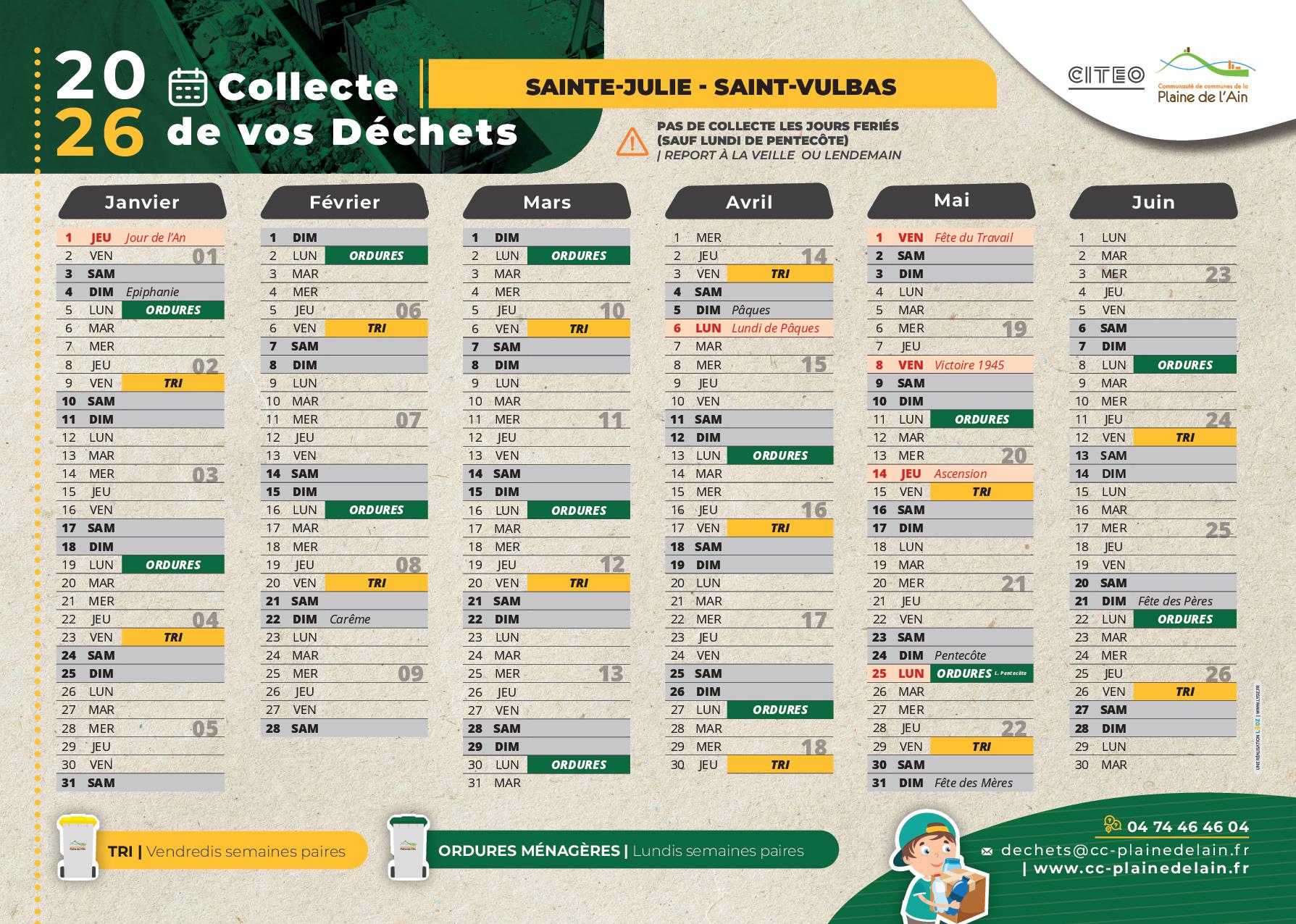 PLANNING DES COLLECTES 2026