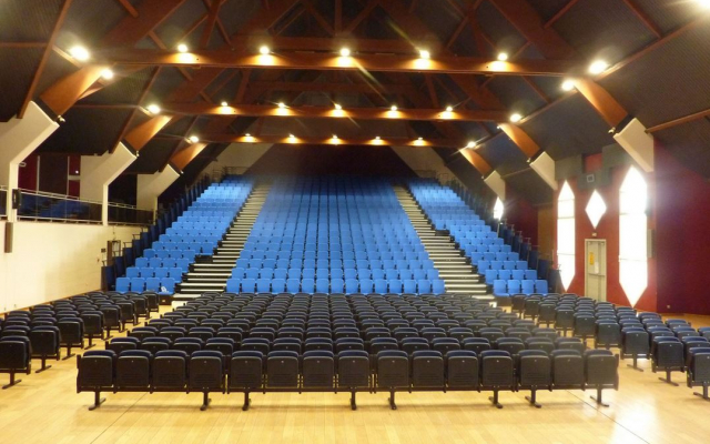 La salle polyvalente en configuration spectacle peut accueillir 880 personnes et 730 personnes en configuration repas. Un espace bar et une cuisine avec four et réfrigérateur sont à votre disposition (espace modulable et cloisonable, connexion wifi, salle climatisée, sonorisation, vidéoprojection).