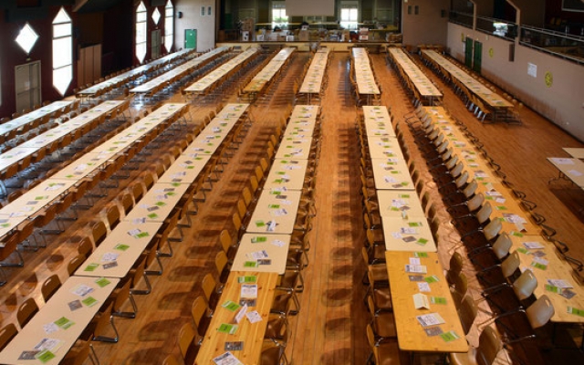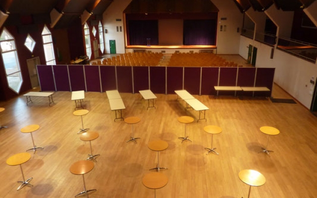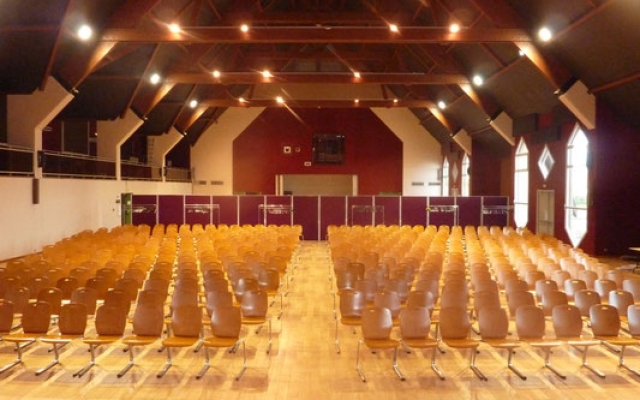 La salle polyvalente en configuration spectacle peut accueillir 880 personnes et 730 personnes en configuration repas. Un espace bar et une cuisine avec four et réfrigérateur sont à votre disposition (espace modulable et cloisonable, connexion wifi, salle climatisée, sonorisation, vidéoprojection).