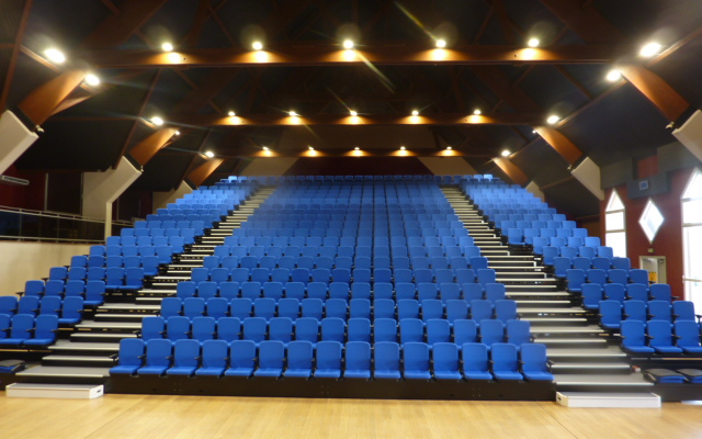 Cette salle dispose d’un gradin télescopique de 486 places et d’un parterre de 253 places.
